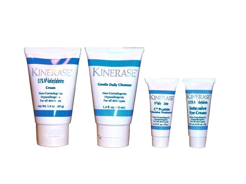 - This Travel Kit contains the following: 1.4oz Kinerase Lotion, 1.4oz Kinerase Gentle Daily Cleanser, 0.25oz C6 Peptide Intensive Treatment and 0.25oz Intensive Eye Cream